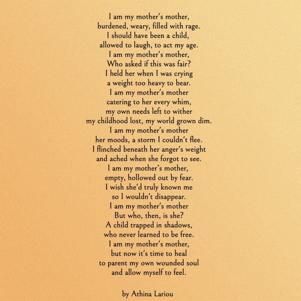 This video is inspired by my own experience of being a parentified daughter and I share a deeply personal poem I wrote in my early twenties when I was struggling with my mother.